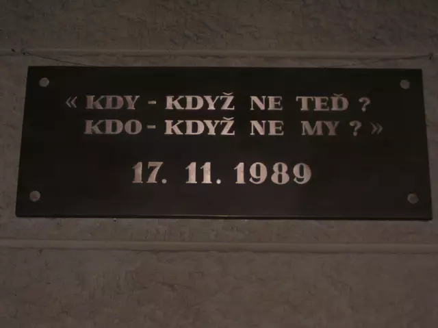 布拉格的美,是森系之美,艺术君一直心向往之。然而,波诡云翳的二十世纪中,这里的人民却经历了几十年的动荡和波折。从二战开始,一直到柏林墙倒塌,无数催人泪下、又引人沉思的故事在这里发生。不过,89年的天鹅绒革命终于让这里的人民成功品尝到自由的味道。下面这块碑就竖立在此次革命开始的地方:
