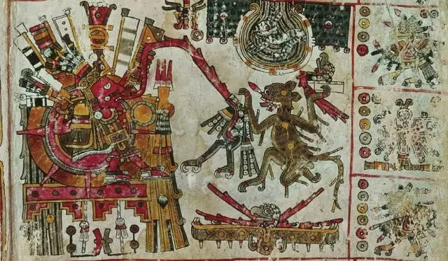 米斯特克艺术家,约15世纪,博尔吉亚抄本:太阳神托纳季乌,约1400,画于动物皮上,梵蒂冈图书馆