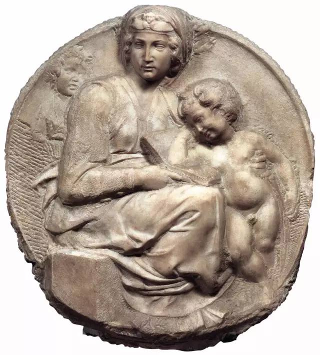 这里还有一件米神精美绝伦的环形浮雕《圣母怜子图》。