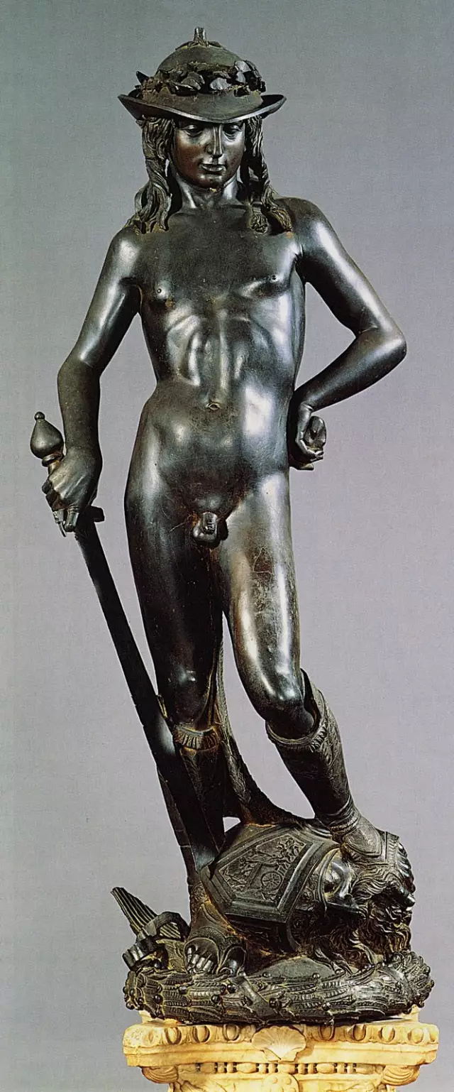 下面,让我们看看自古罗马帝国之后,西方艺术家第一件独立的裸体雕塑——多纳泰罗的《大卫》。
