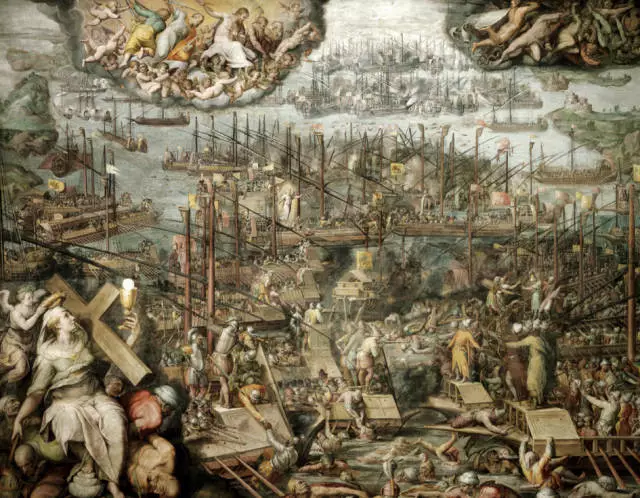 米开朗基罗有众多仰慕者,画家、作家乔尔乔·瓦萨里也是其一,他在一五七一年到一五七三年之间接受委托,为皇家大厅绘制了众多大型场景。该大厅主要用作接待和觐见,今天依然如此,教会历史中的决定性时刻,是大厅绘画选择的主题。其中最重要的两个场景,是《格列高利十一世 从阿维尼翁返回》和《勒班陀之战 》。