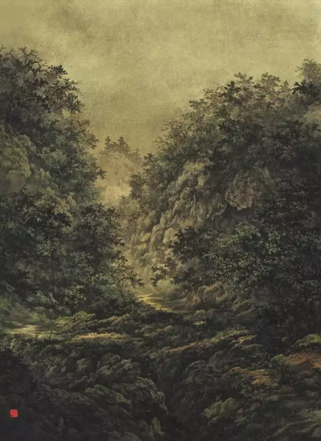 要说艺术君自己喜欢的,是意外发现的一位日本画家——加藤良造。他用天然矿物颜料,在日本纸上绘制山水风景,那种层次感和颜色彼此之间的烘托感,细腻到惊人,而且越看越陷越深,喧闹无比的展场似乎一下子安静了下来。
