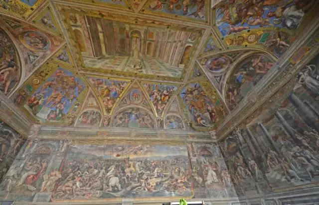 房间中最大的湿壁画,是《米尔维安桥之战》,占据了一整面长墙。这幅画刻画出君士坦丁的部队打败马克森提乌斯的手下,君士坦丁也因此得以昭告天下:自己才是唯一的统治者。