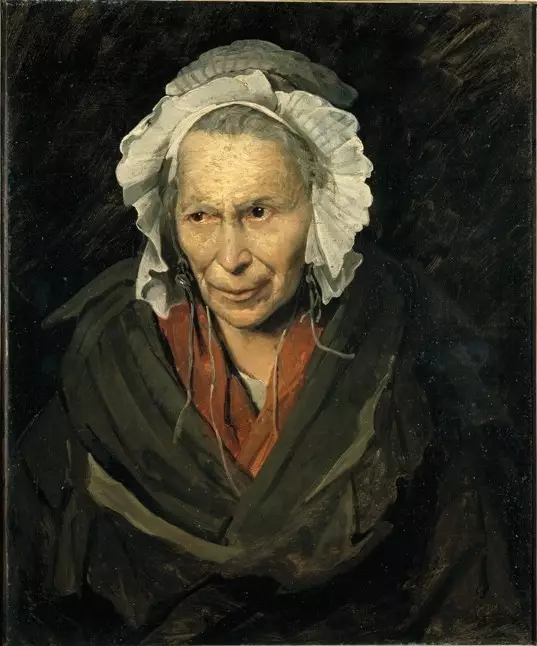 这是一幅不一样的肖像画,画家杰里科用白色的包头巾和红色的衣领突出她的脸,又构成了一把匕首,她的眼神就是锋利的刀刃,眼瞳中、脑门上寒光闪闪,心理素质不好的人,看了晚上恐怕要做噩梦。而画家的视角似乎有意要让观者站得比她稍高一些,仿佛是让我们和画家一起俯视她。可是这里隐含着一个问题:我们真得可以俯视她吗?在理性的启蒙时代,也许可以。到了杰里科所在的浪漫主义时期,情感和激情又得到了重视。在这幅画创作前的1819年,杰里科自己也遭遇了精神崩溃。在他而言,这幅画中必然有他自己的体验。到了二十世纪,有一个绘画流派叫“自动主义”(automatism),主张艺术家要表现不受理性控制的、潜意识甚至无意识的创造力。所以,二十一世纪的我们,也可以思考一下这个问题:真得可以俯视她吗?