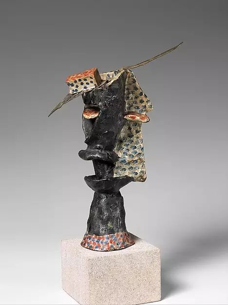 毕加索想给我看看展示箱,或者按照法国画家萨巴特(Sabartés)的说法,称之为“博物馆”。那是一个大箱子,由金属和玻璃构成,上了锁,放在画室旁边的一个小房间里。毕加索掏出自己的一大把钥匙,要打开它。里面堆了大概有50来个小雕像,还有他雕刻的木头、蚀刻的石头,以及其它一些稀奇古怪的东西,比如扭曲变形的喝水杯子捏合在一起,一个堆在另一个上面,我可是大开眼界了!这算是毕加索的“实验作品”吗?看到这个奇怪的东西,我更加好奇了,他非常小心地拿出来,给我看。