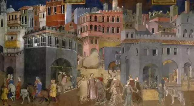 题图为锡耶纳市政厅的壁画《好政府和坏政府》。